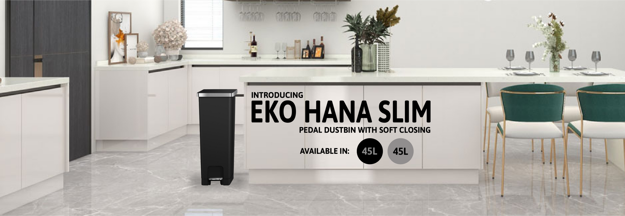 EKO Slim Dustbin | HANA Slim | EK6377 | 45LThe EKO HANA Slim Dustbin EK6377 offers a perfect blend of style, functionality, and space-saving design...